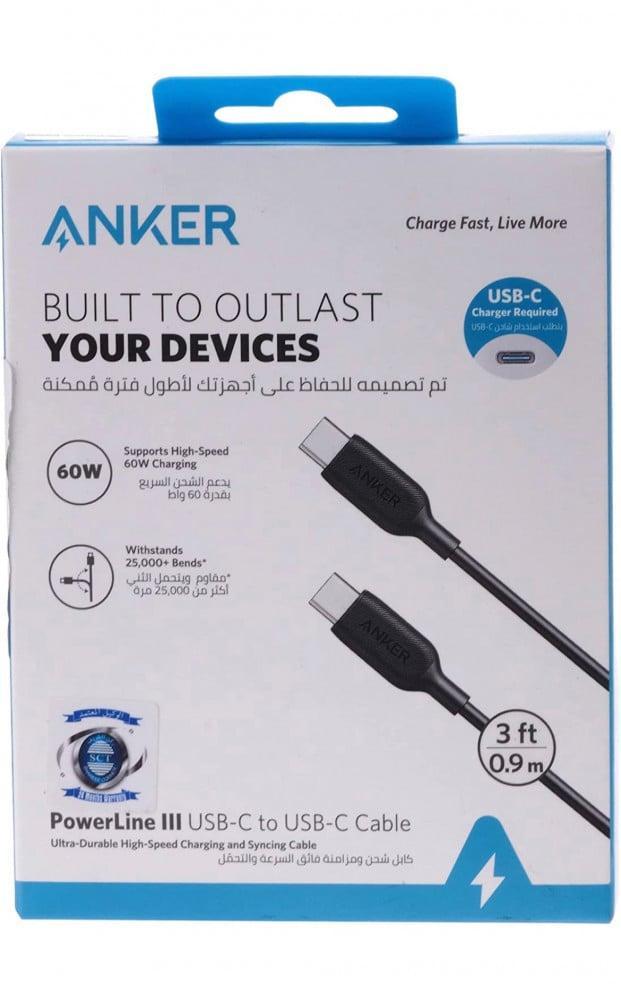 انكر باورلاين كيبل شحن Type-C الى Type C يدعم الشحن السريع ومناسب لاجهزة الشحن بتقنية ال PD مقاس 3قدم
